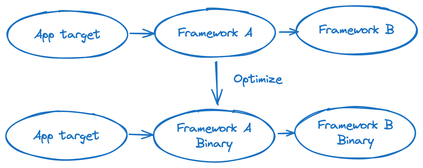 How can we optimize this? Simply put, we need to skip compilation steps in the graph. However, Xcode's build system doesn't allow direct manipulation of internal graph processing, unlike build systems like Gradle.